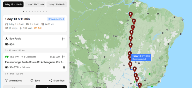 Quem acompanha discussões sobre mobilidade elétrica costuma ouvir dois argumentos recorrentes: “Carro elétrico polui mais por causa da bateria.” “Mas a eletricidade também polui.” “Etanol é praticamente neutro.” "Mas o tempo que você vai perder tendo que parar recarregar o carro é muito maior" A melhor forma de discutir isso não é na teoria. É … Continue lendo Quanto custa (e quanto polui) uma viagem longa?